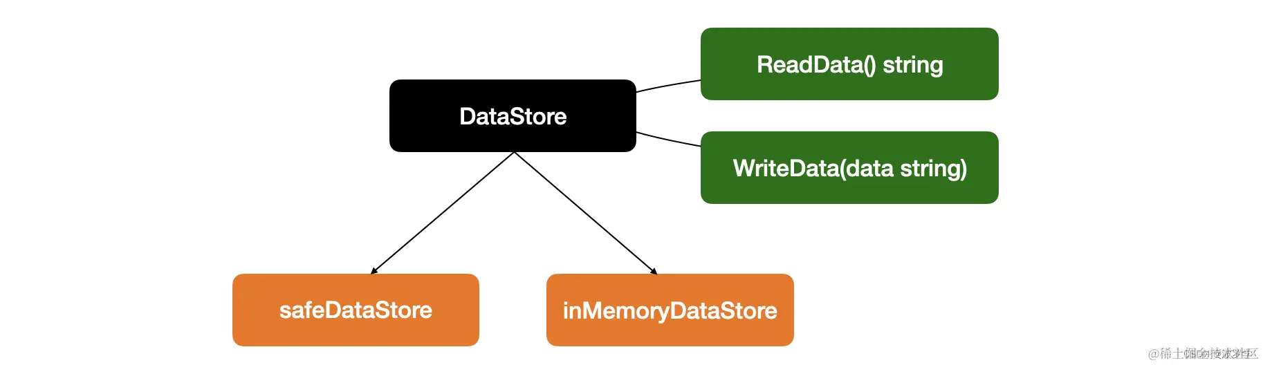 如上的代码所示,DataStore 接口定义了数据存储的基本操作。同时,我们提供了两种实现: