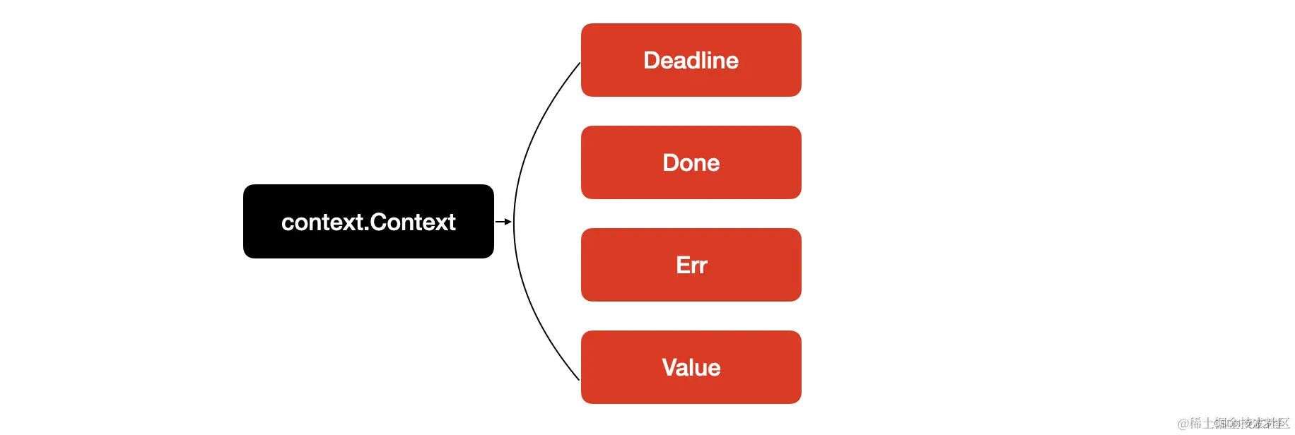 这个接口定义了四个方法:Deadline、Done、Err 和 Value。这些方法提供了控制和访问 context 的手段。