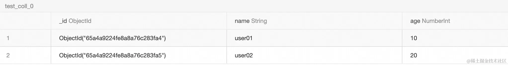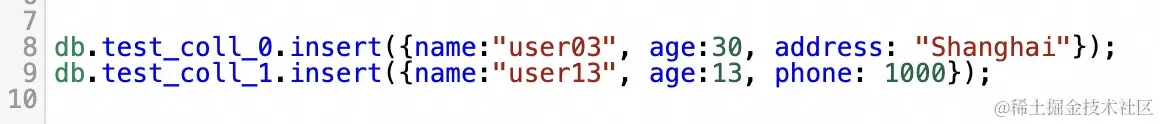 此时,向 MongoDB 的 test_coll_0 中插入一条包含了新字段 address 的数据,同时向 test_coll_1 中插入一条包含了新字段 phone 的数据。