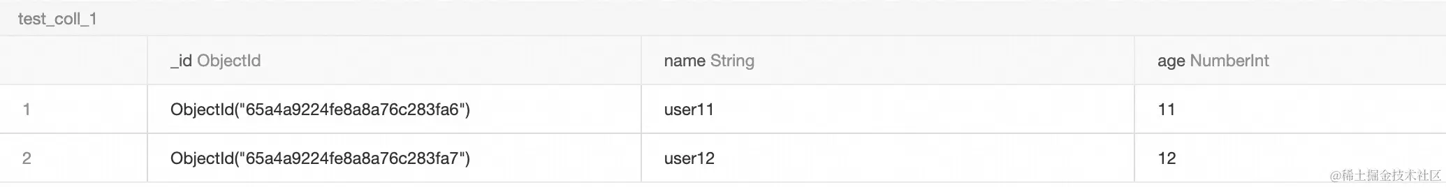 例如,对于包含如下三条数据的 Collection: