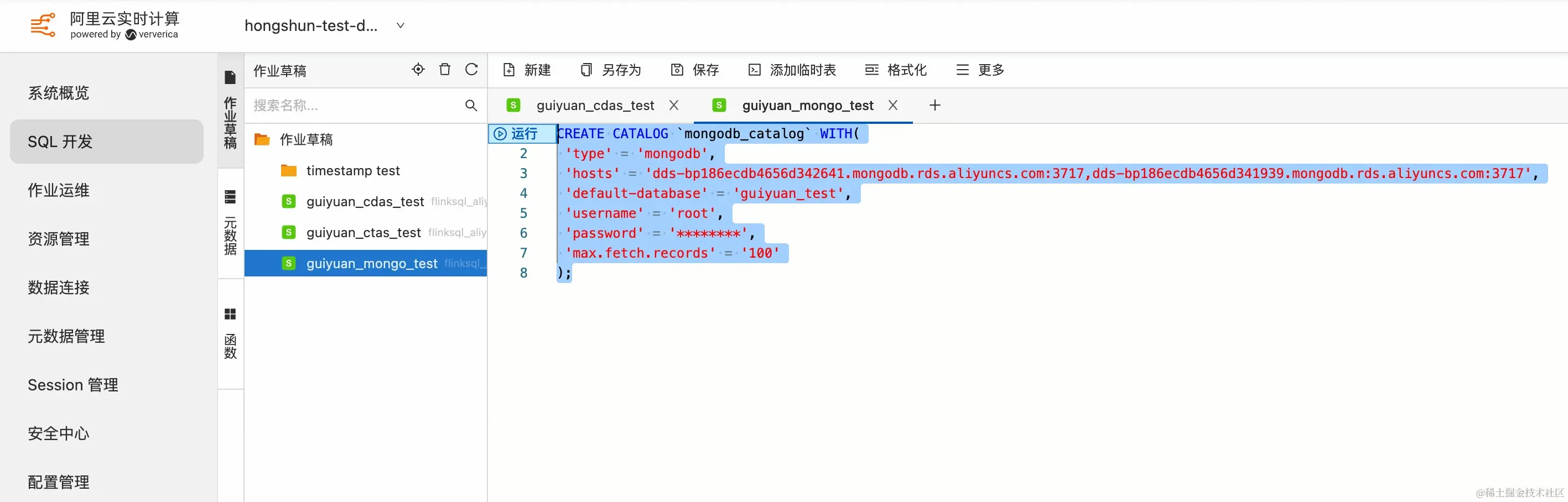 在使用 CTAS/CDAS 语句同步数据之前,需要先创建 MongoDB Catalog: