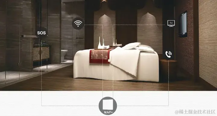 采用融合通信方式,事情就简单多了。每个房间只需要从弱电井布一根网线到客房,大家可以想象在施工上会有多大的便利,同时减少了大部分的线缆成本(在这里做一下简单的计算)。在房间内我们的多业务接入终端MAP+,能够解决客房内的所有的通信业务,把电视信号传递给电视,电话信号传递给电话,把网络信号转化为WIFI。同时它的扩展功能可以根据酒店的需求,可以接收4路防区开关量输入,接入报警系统;可以接入客控系统;可以接入可视门牌,访客在门外按下门铃,客房的电视就能显示门外视图;还可以接入SOS、请及清扫、勿扰等客房状态。