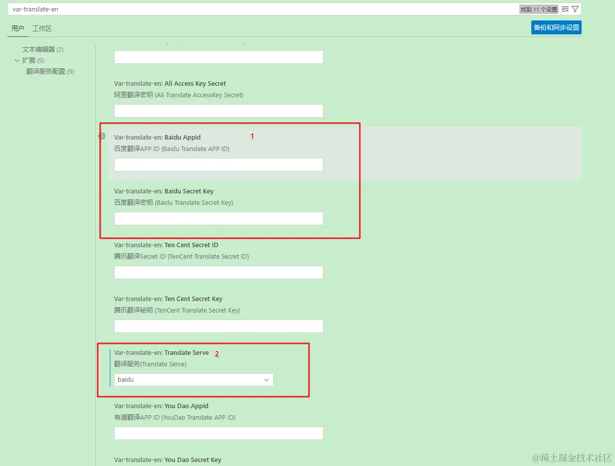 - 配置百度翻译APP ID和密钥,选择翻译服务为百度