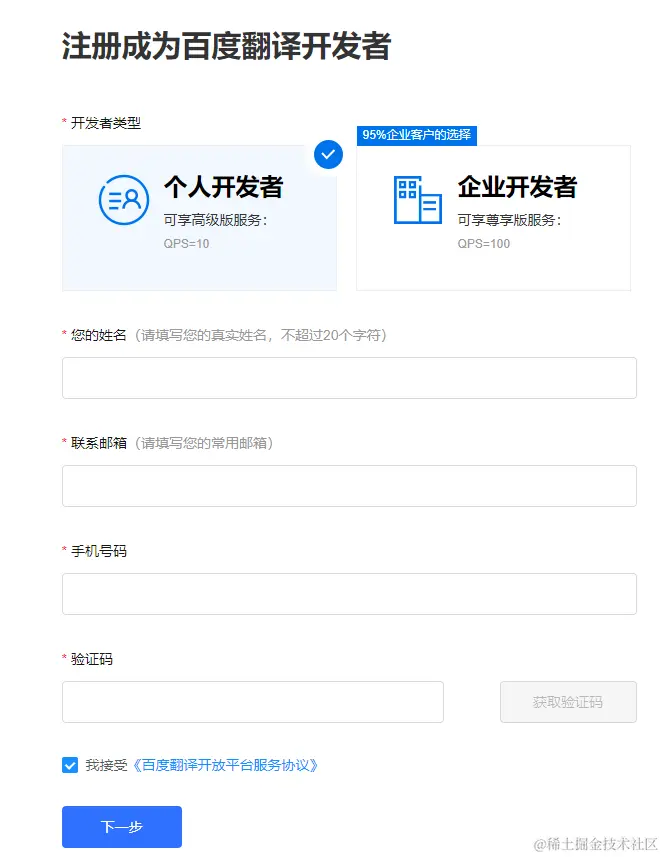 - 访问百度翻译:fanyi-api.baidu.com/ 并登陆账号