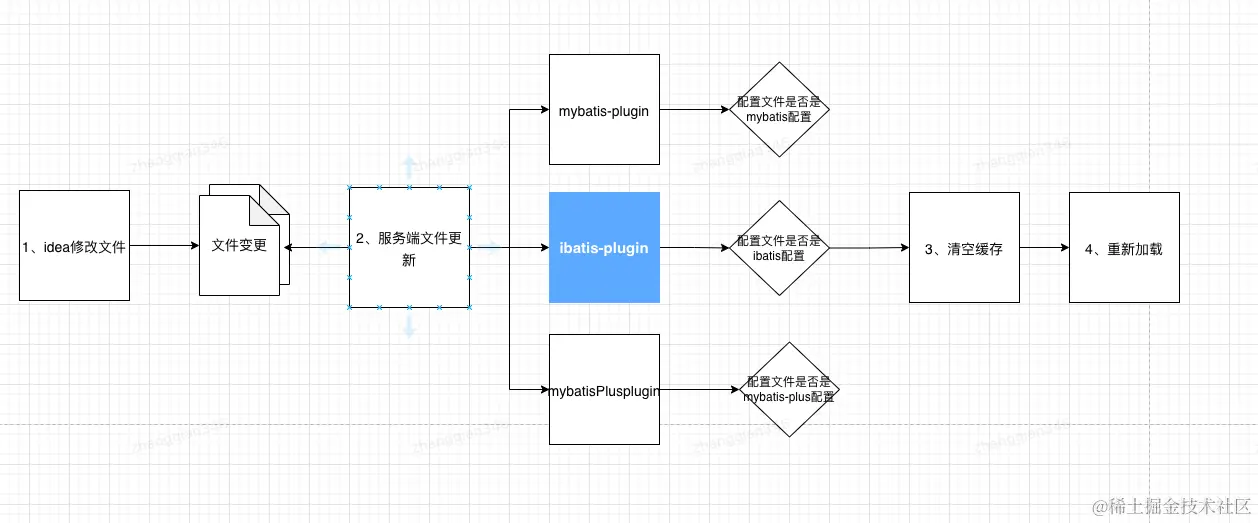 在这个流程中,我们根据不同的场景去选择不同的插件plugin,通过plugin实现不同的监听方法。那么在具体的实现过程中,如果服务端收到很多变更配置文件,又如何来判断变更的文件哪些是ibatis配置信息呢?