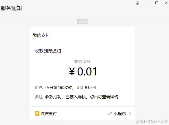 收到款后 “服务通知” 或者 “微信支付” 中就会有消息