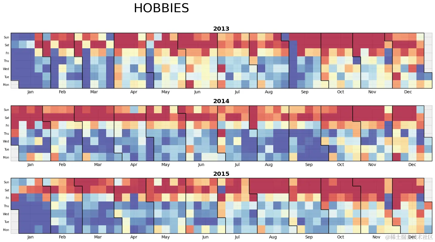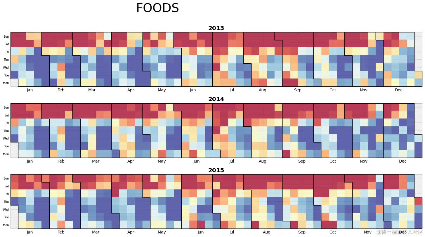 calmap(axes[2], 2015, vals.reshape(53,7).T)