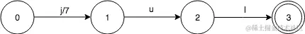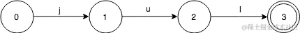 当查询这个FSA是否包含“jul”的时候,按字符依序输入。