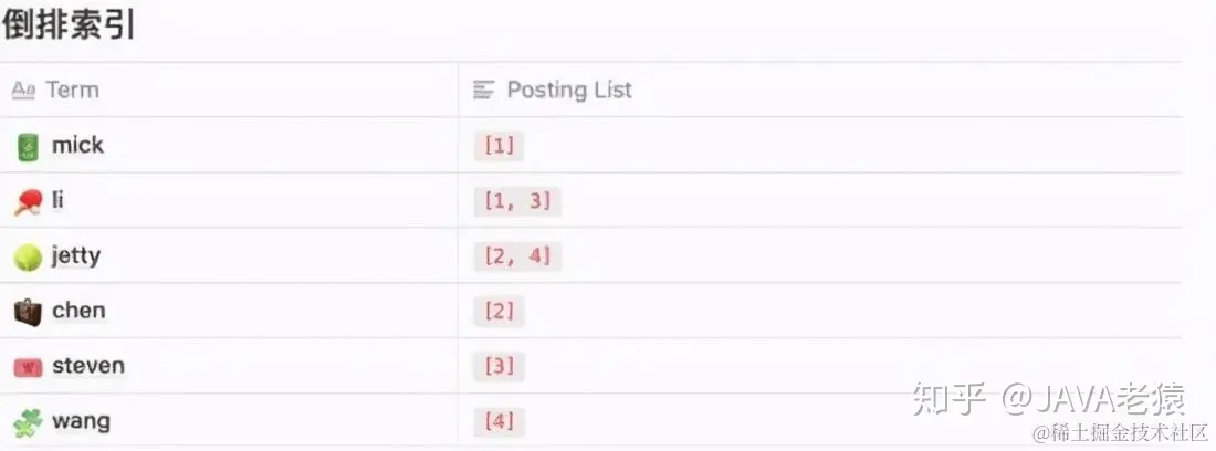 当要查询 包含 li 的数据时,只需要通过这个索引结构查询到 Posting List 中所包含的数据,再通过映射的方式查询到最终的数据。