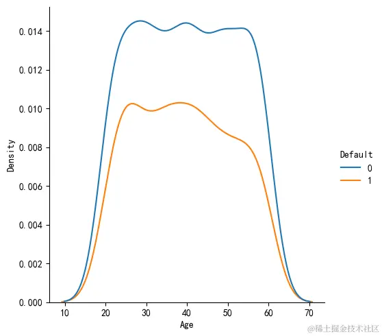 上面的数据信息部分中我们也观察到,是否违约的客户的年龄分布是一致的,也就是说和年龄关系不大。