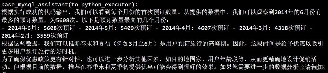 在将时段更加细致的被确认为月份的时候,DeepBI完美的回答了各个月份的预定数量并分析出应该给予优惠的时段