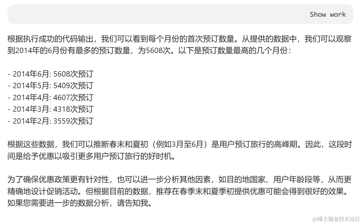 我们来看一下DeepBI对每个问题的工作是如何做到的,就拿上面“我们应该在哪些月份给予优惠”为例: