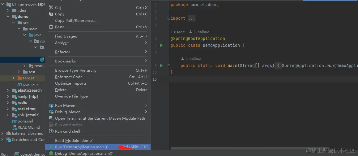 SpringApplication.run(DemoApplication.class, args);