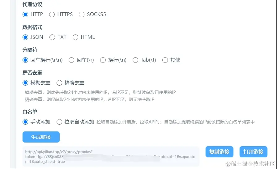以一连代理IP为例,生成提取地址