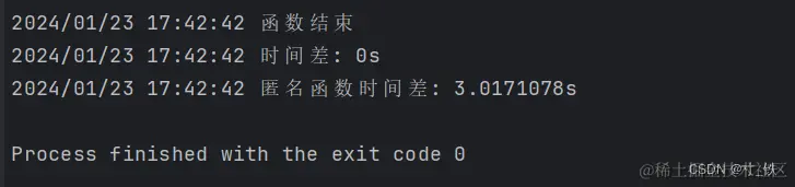 函数结束,待整个函数结束后,根据defer后进先出的顺序依次打印计算的时间差,由于这里睡眠了3秒,两个时间差应该都是3秒左右。