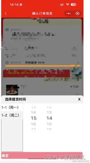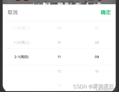 - 类似外卖提货的,左侧可选未来n天内的某一天提货, 右边可以选具体时+分