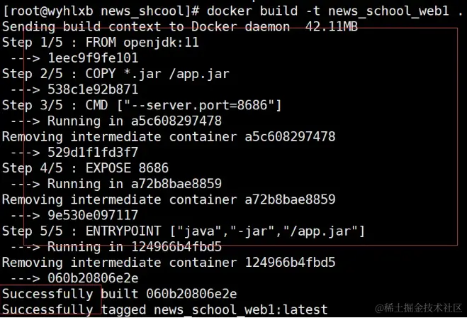 •后面跟的 news_school_web1 就是为这个镜像取的名字