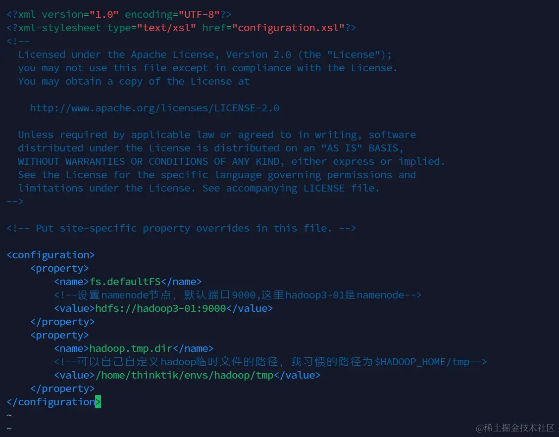 <!--可以自己自定义hadoop临时文件的路径,我习惯的路径为$HADOOP_HOME/tmp-->