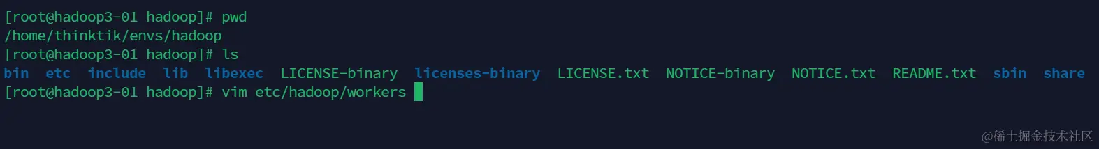 在每台机器上都需要执行vim etc/hadoop/workers修改workers文件