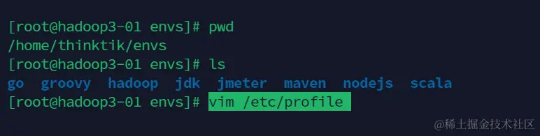在每台机器上都需要执行,我们需要通过命令vim /etc/profile编辑环境变量
