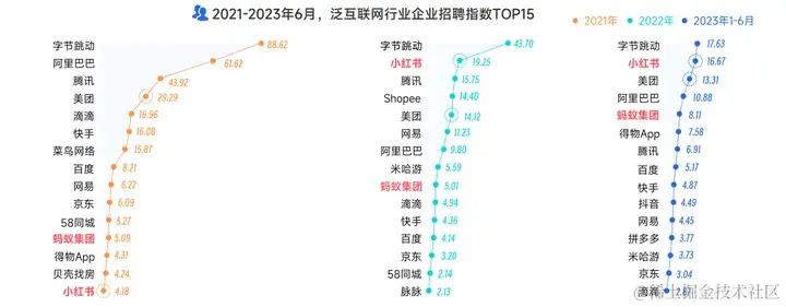 2021年,字节跳动的招聘指数断层第一,大幅的扩张和招人给市场打了一针强心针,而往后三年,如字节、阿里、腾讯这类的超级大厂也放缓了招聘需求,似乎在预告着大厂疯狂招人的时代的结束。