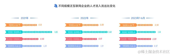 2023年,互联网行业的求职难度可以说是地狱级别,人才供需比持续上升,人才流出比达到2.34,也就是说平均约5个人才竞争2个岗位。