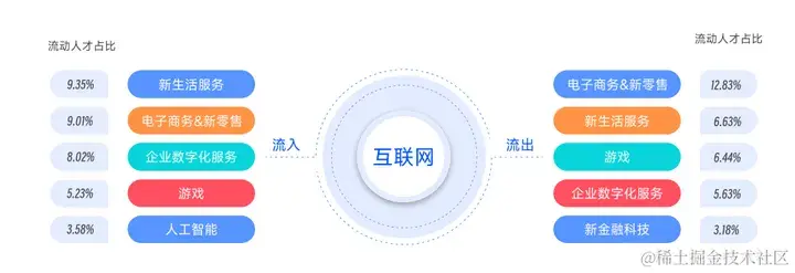 其中,有12.83%流入了电子商务和新零售行业,还有部分流入新生活服务、游戏行业等,虽说新能源行业是当前的香饽饽,但由于自身行业壁垒和技术要求,很难成为互联网人破局的选择。