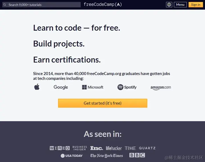 您可以免费学习编码、构建项目并获得认证。