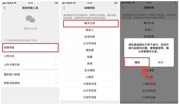 方法二:通过故障修复找回微信失效图片