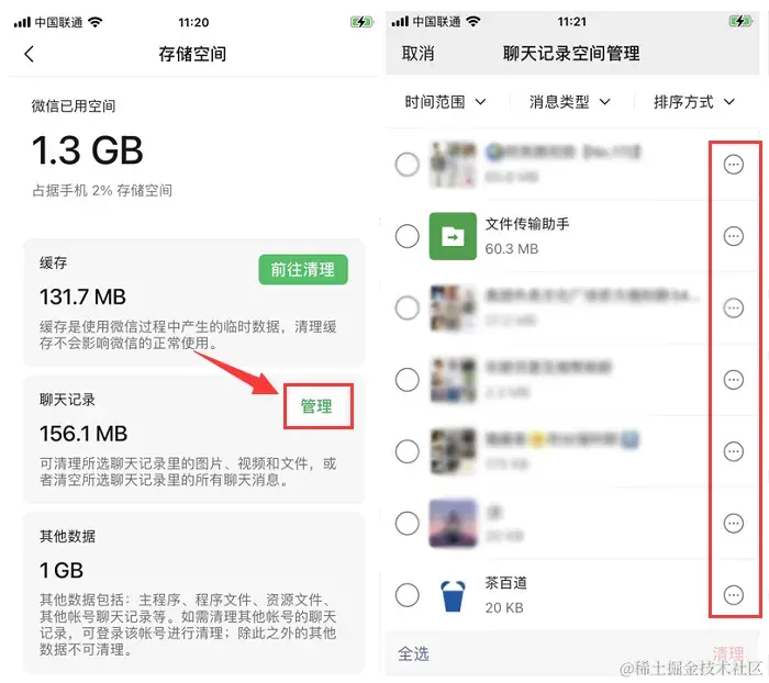 方法一:在聊天记录空间管理恢复微信失效图片