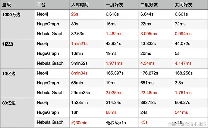 | 1000 万条边 | Neo4j | 26 秒 | 6.618 秒 | 6.644 秒 | 6.661 秒 |