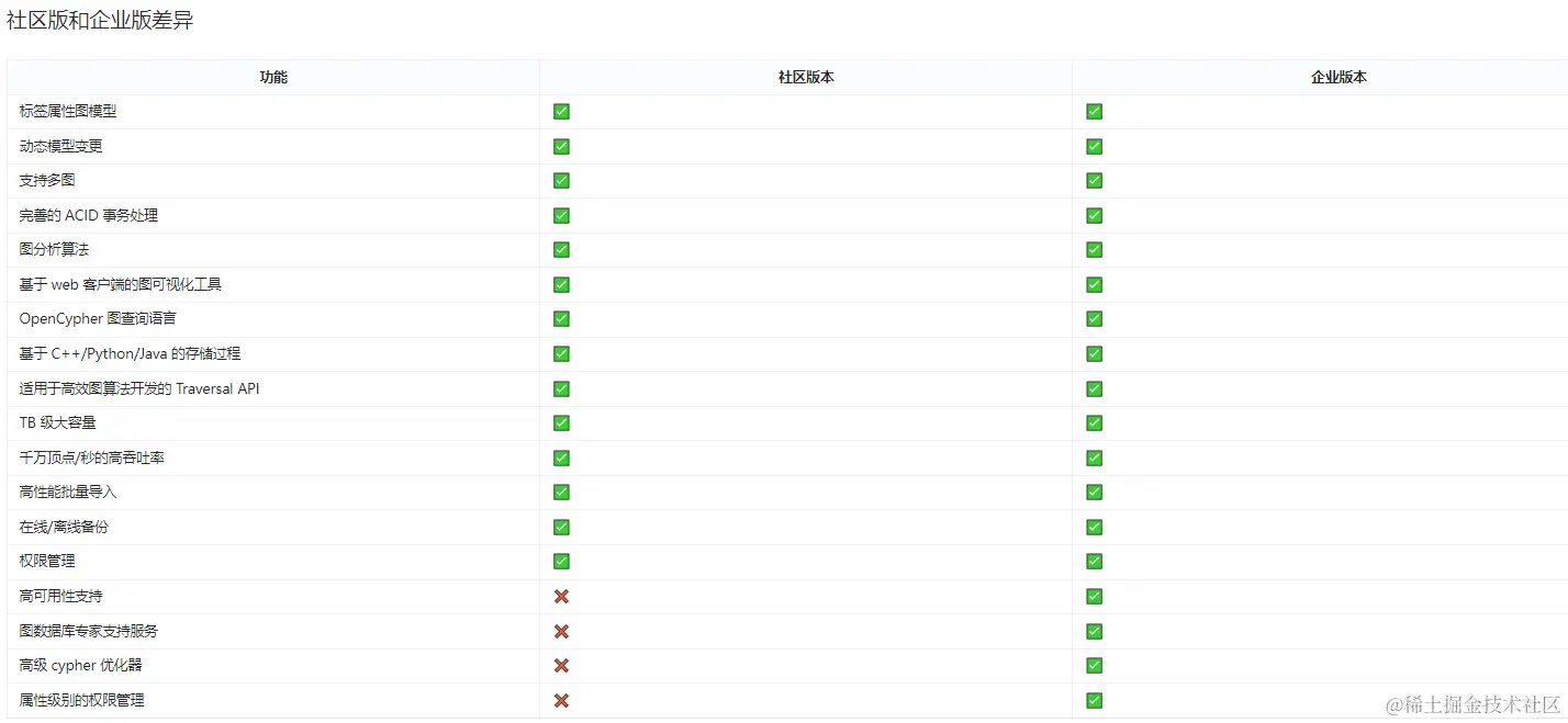 整体上来说,社区版比企业版少一些可视化以及图算法