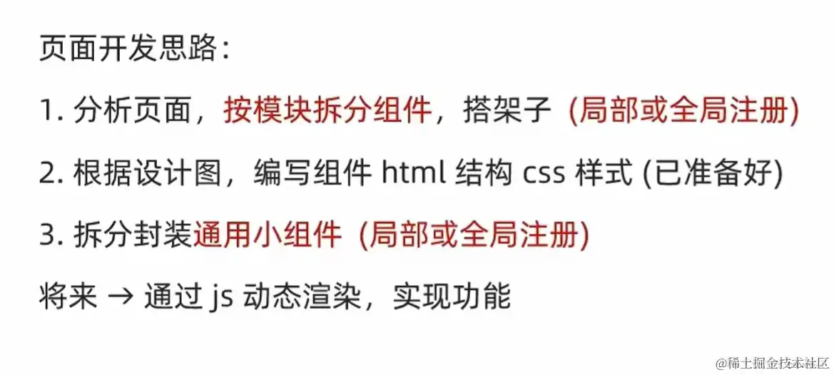 组件拆分的页面开发思路: