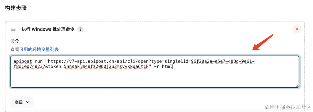 Step4: 在命令窗口中,输入Apipost的执行命令,设置完成后,点击保存