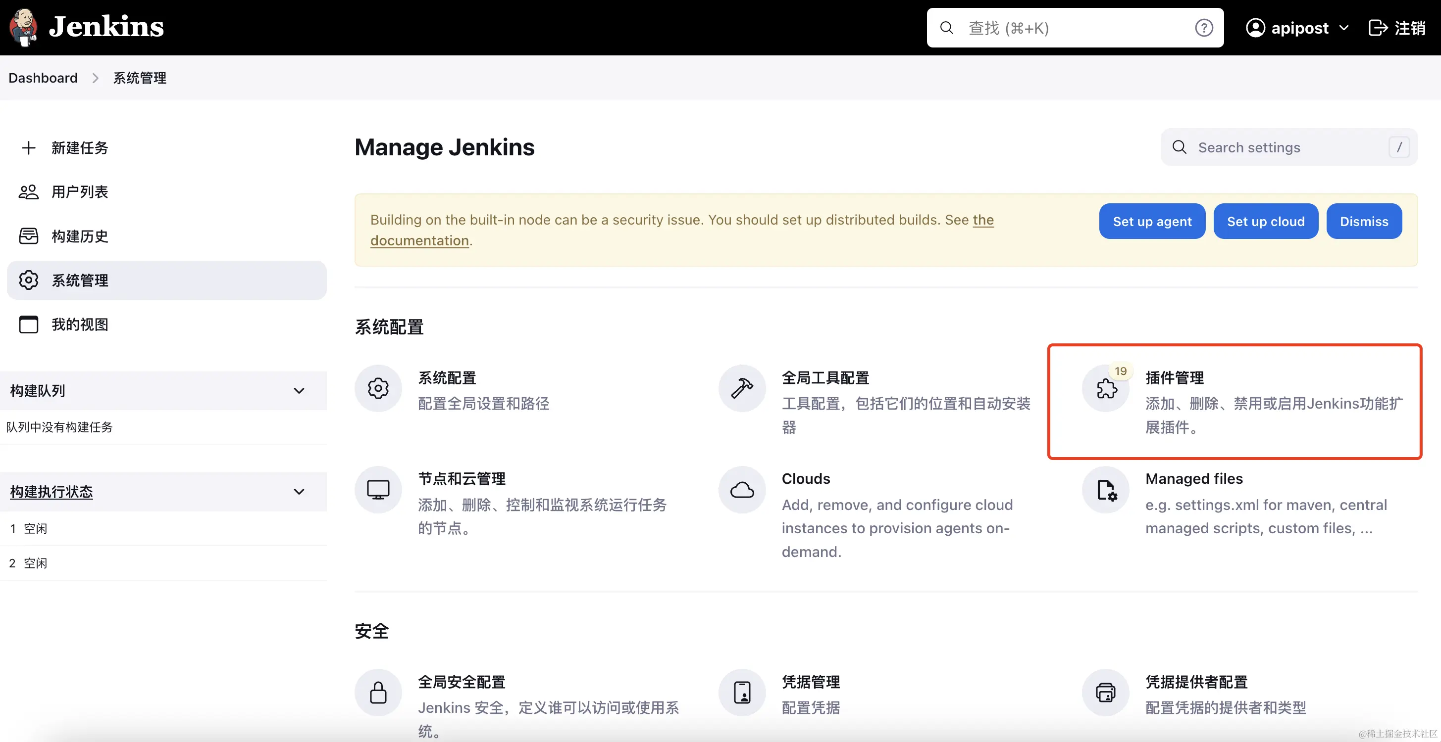 Apipost cli基于Node js运行 需要在jenkins上配置NodeJs依赖