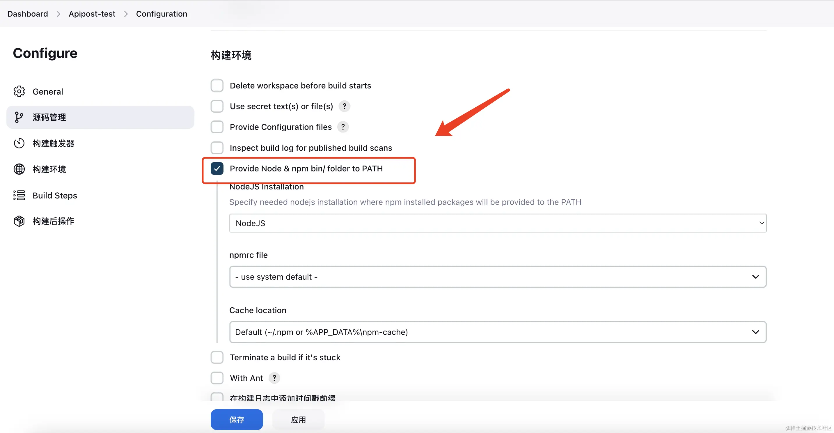 Step3: 在构建环境中设置Node信息