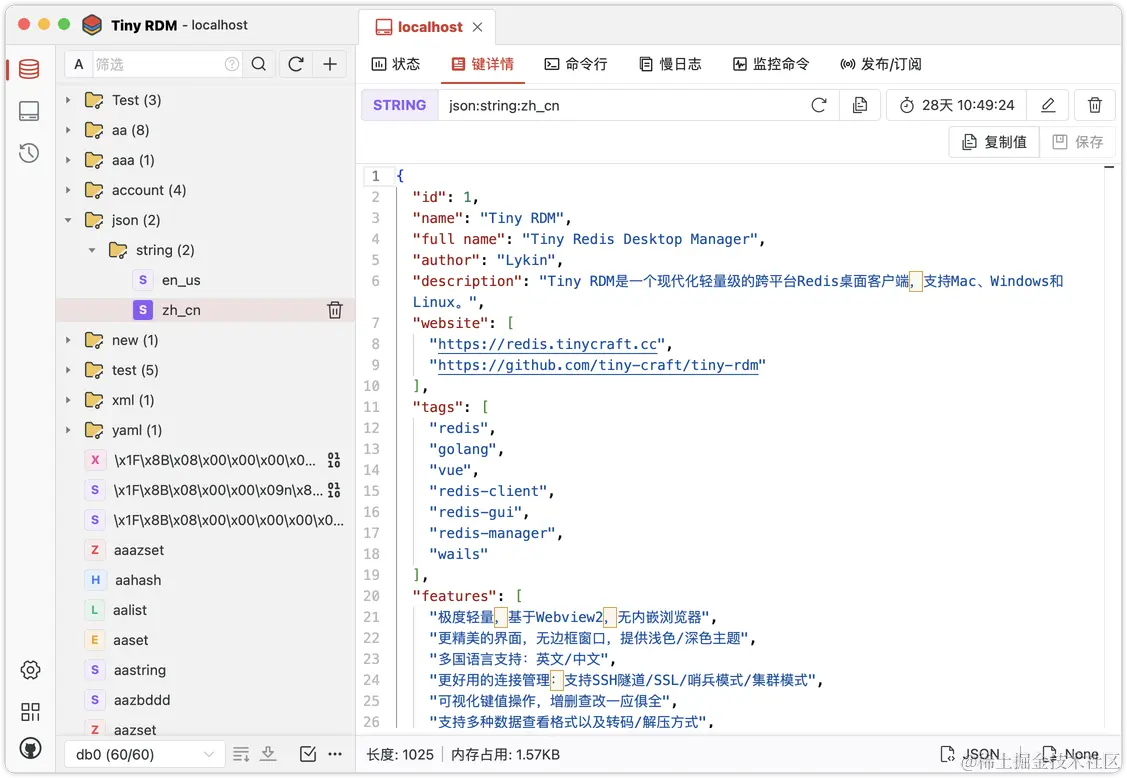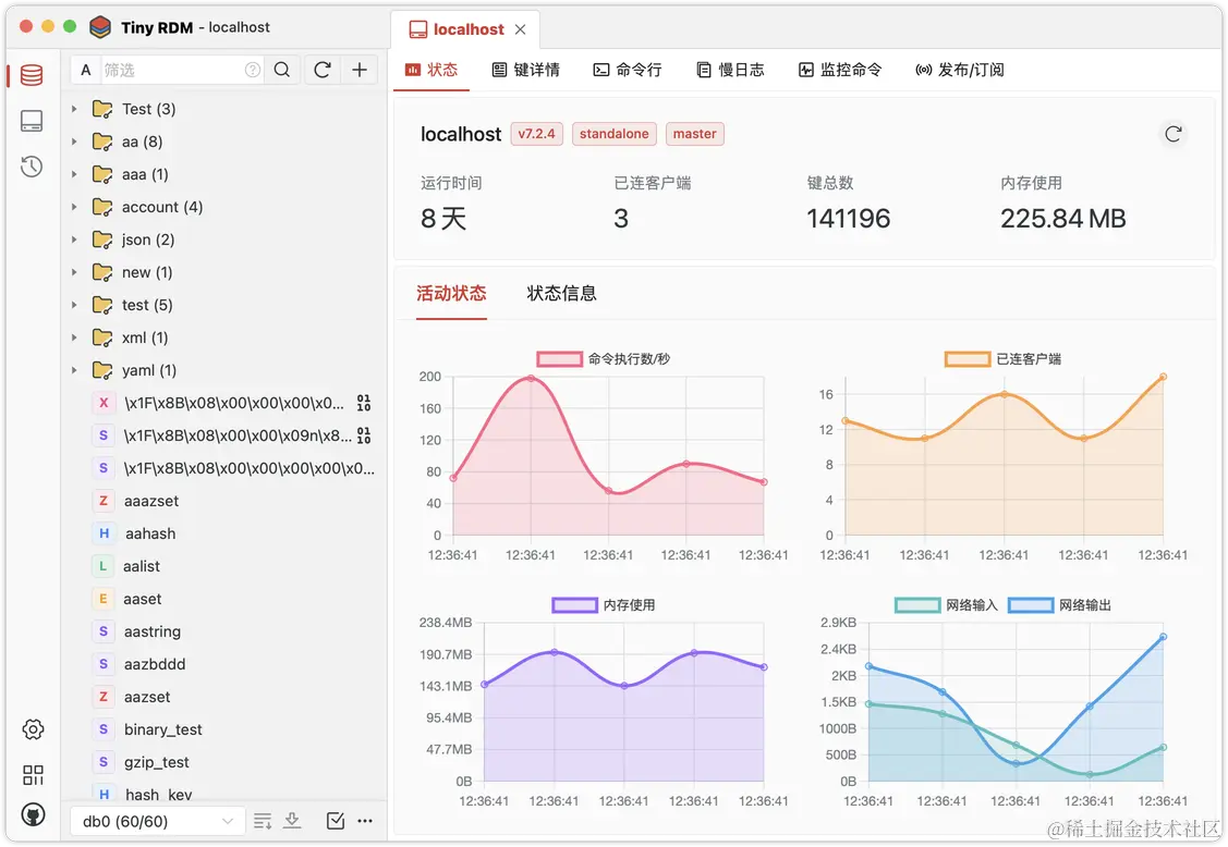 Tiny RDM是一款功能齐备的Redis客户端工具,完全可以满足日常开发和运维使用需要。该项目系开发者为爱发电的开源作品,有任何对项目有益的建议和反馈,欢迎到Github issue发表。 希望能为国产开源添砖加瓦,也可以给其他开发者提供价值。