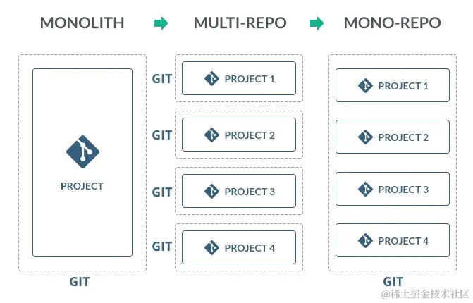 这些场景演化出了monorepo开发策略,借助monorepo仓库中心化的思想,如果能解决单一仓库管理、多包统一构建等工程问题,“合久必分、分久必合”遇到的场景困境将迎刃而解。