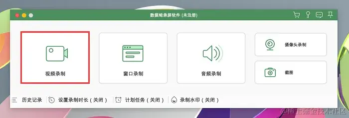 第1步:在数据蛙官网下载适用于mac系统的数据蛙录屏软件,安装完成后,进入到用户页面,录制电脑屏幕可以使用 “视频录制” 模式。