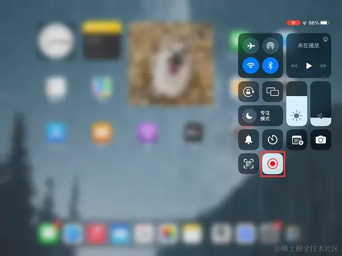 第2步:从ipad屏幕右上角向下滑动,打开控制中心。点击 “屏幕录制” 按钮(一个圆点内的圆圈),启动录屏功能。录屏启动后,ipad屏幕上将显示一个红色的倒计时,随后开始录制。