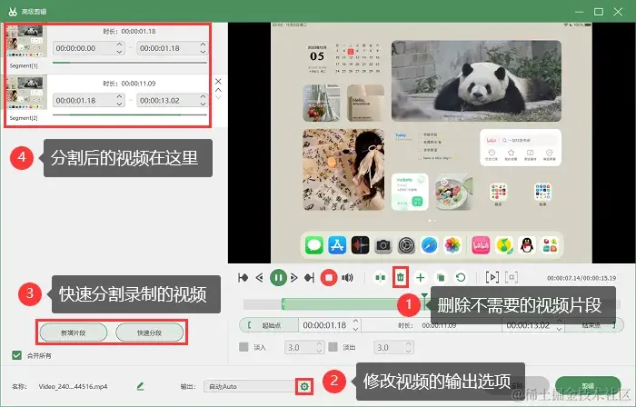 第3步:投屏成功后,点击 “录制” 按钮,开始录制ipad。录制结束后,我们还可以对录制的视频进行编辑(快速分割或者修改输出选项等),然后保存到合适的位置。