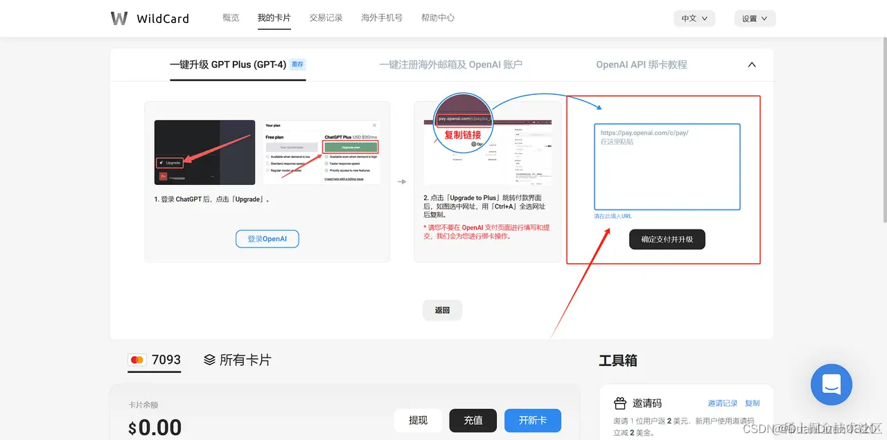 复制个人账户的GPT付费链接到框内,确认后即可自动付费升级(网站内也有快速定位到付费链接地址教程)
