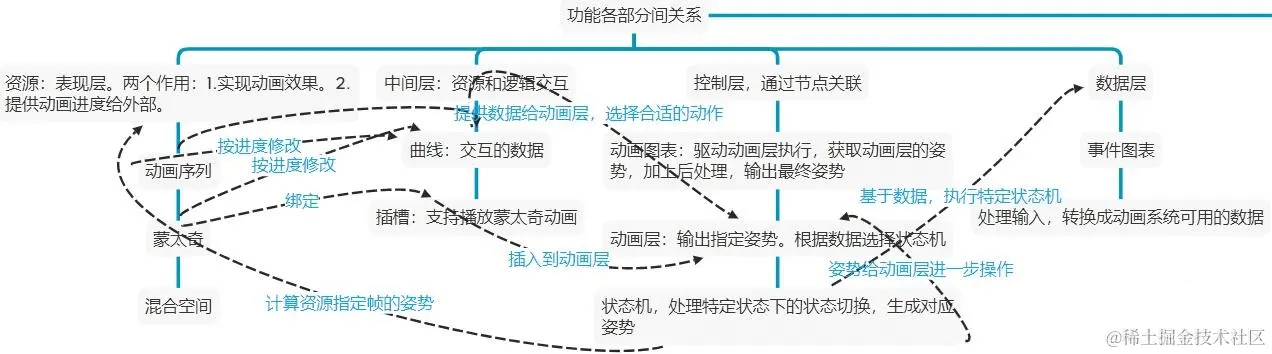 整个动画系统,还包括IK、表情、Motion Matching等应用,以后看到了再来分享。