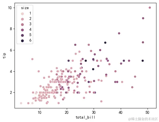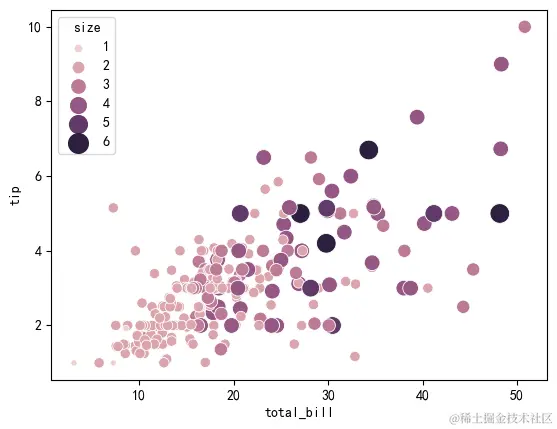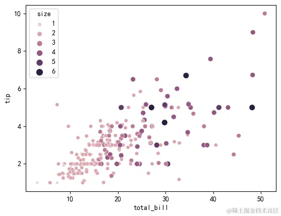 hue="size", # 分组字段