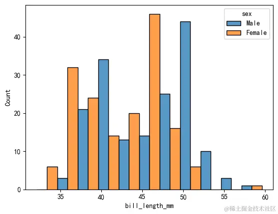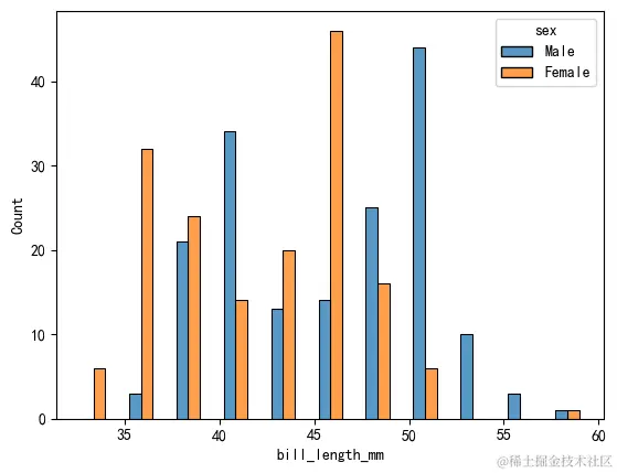 multiple="dodge" # 不同取值['layer', 'stack', 'fill', 'dodge']