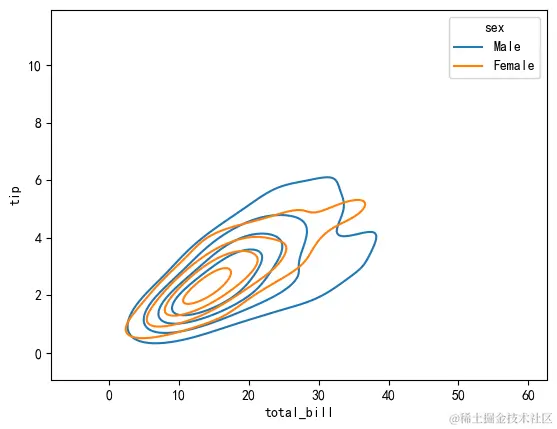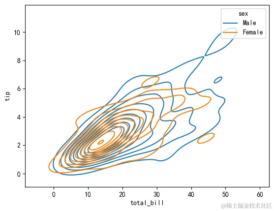 绘制双变量的核密度估计图:
