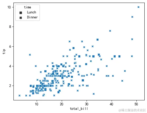 使用style参数将散点标记为不同marker: