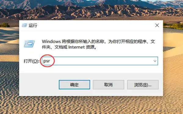 步骤2:在运行窗口中输入 “psr” ,按下回车键,启动步骤记录器。