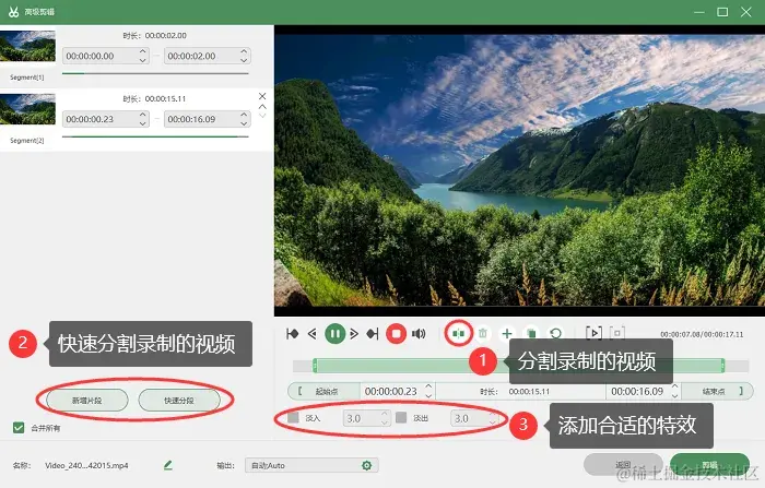 步骤3:录制开始后,您可以在中途随时暂停,点击 “结束” 按钮,视频将会弹出预览,此时我们可以直接保存,或者继续对视频进行剪辑。
