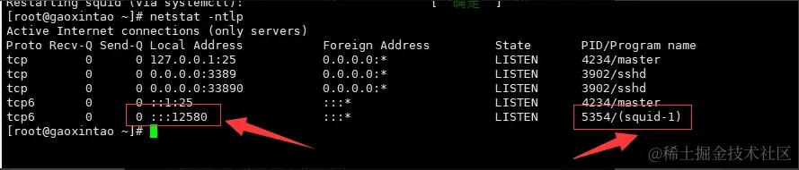 查看squid 是否启动开